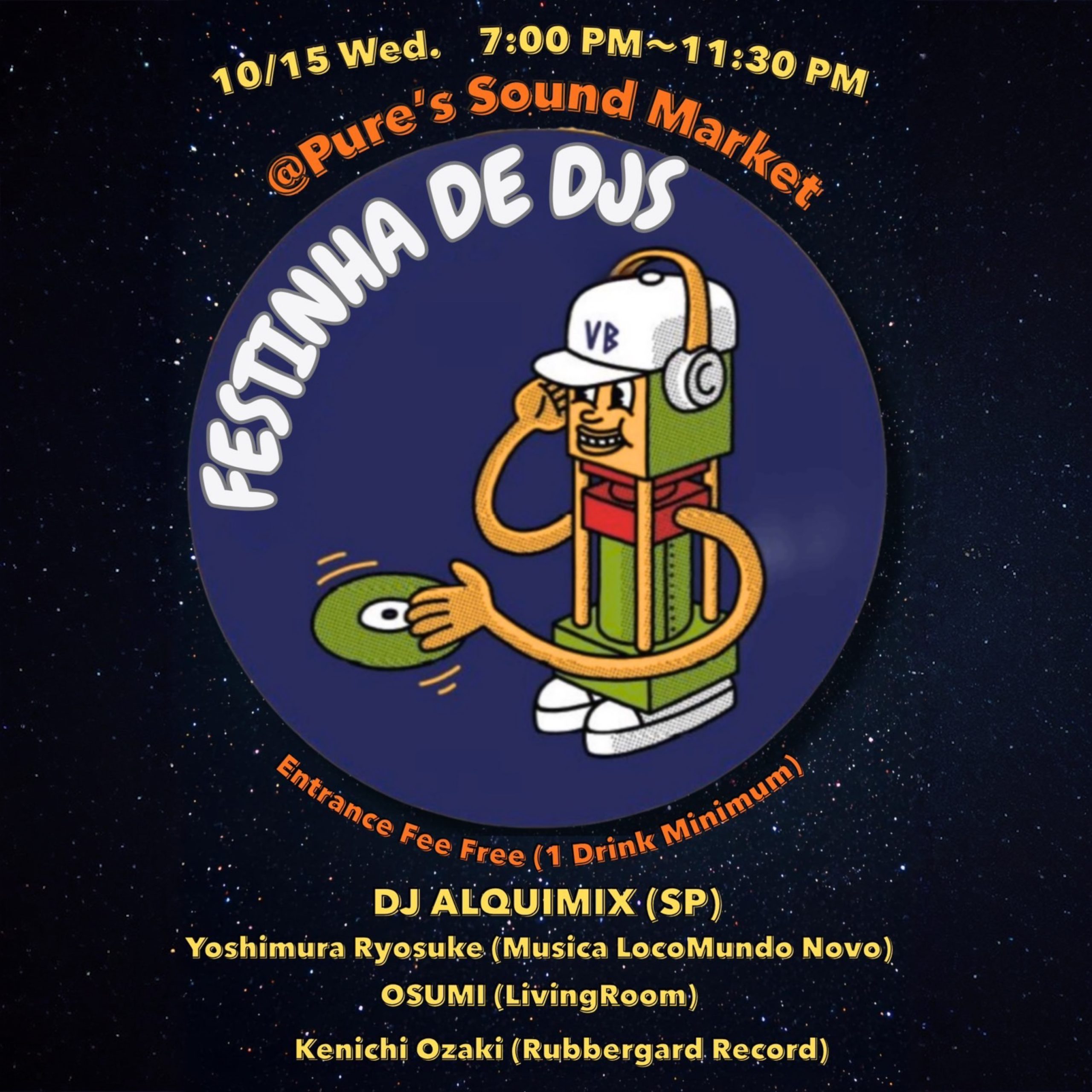 DJ: DJ ALQUIMIX(SP), Yoshimura Ryosuke(Musica LocoMundo Novo) , OSUMI (Living Room), Kenichi Ozaki(Rubbergard Record)