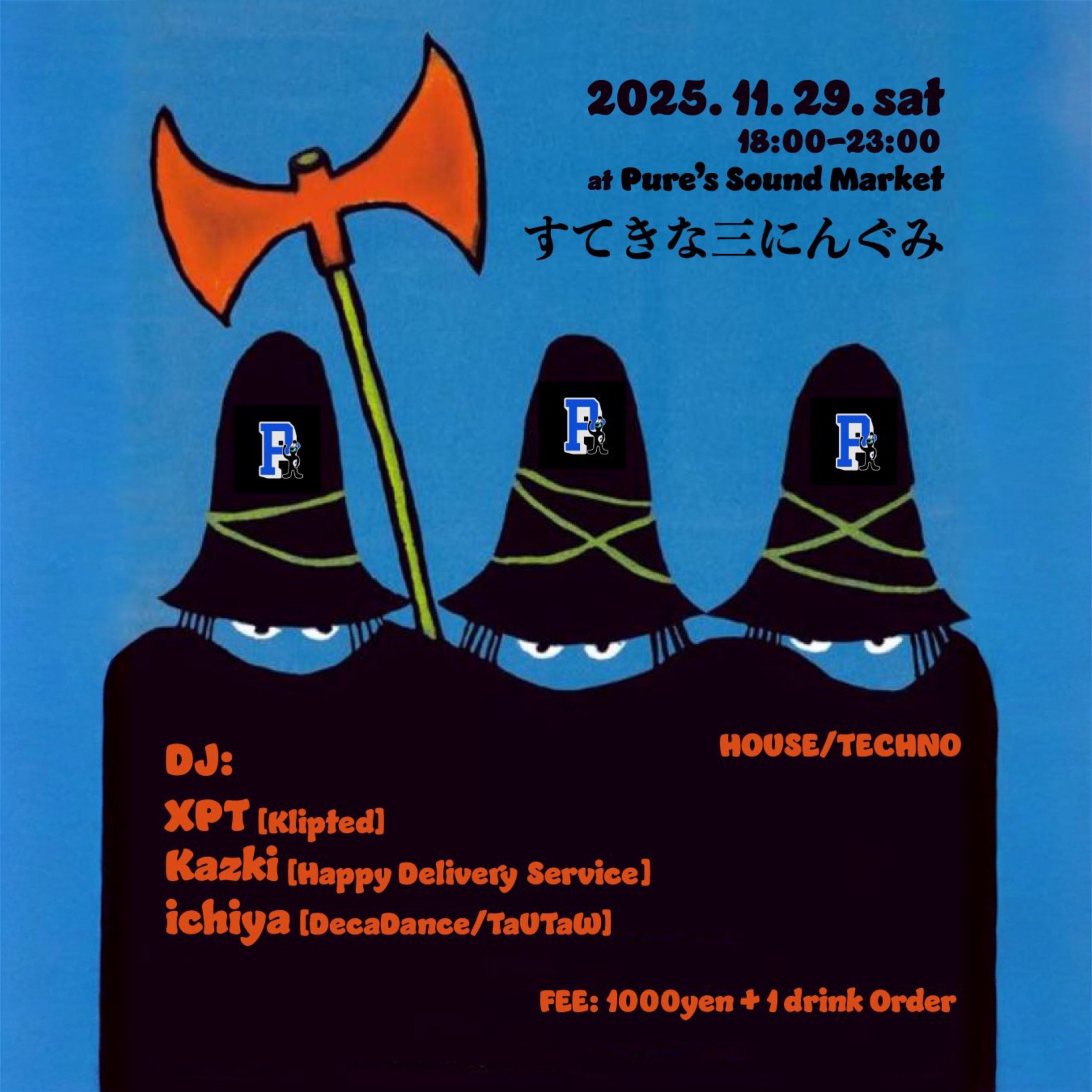 18:00-23:00 ¥1500+drink order DJ: XPT(klipted), Kazuki(Happy Delivary Service), ichiya(Decadance/TaUTaw)