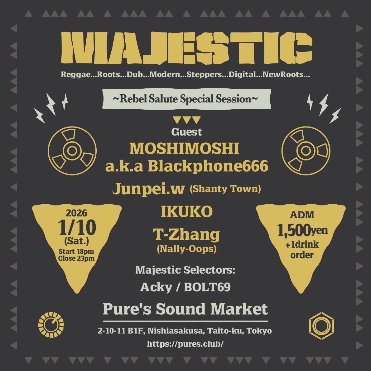 GUEST DJ: MOSHI MOSHI a.k.a. Blackphone666, Junpei.w(Shanty Town), IKUKO, T-Zhang(Nally-Oops)