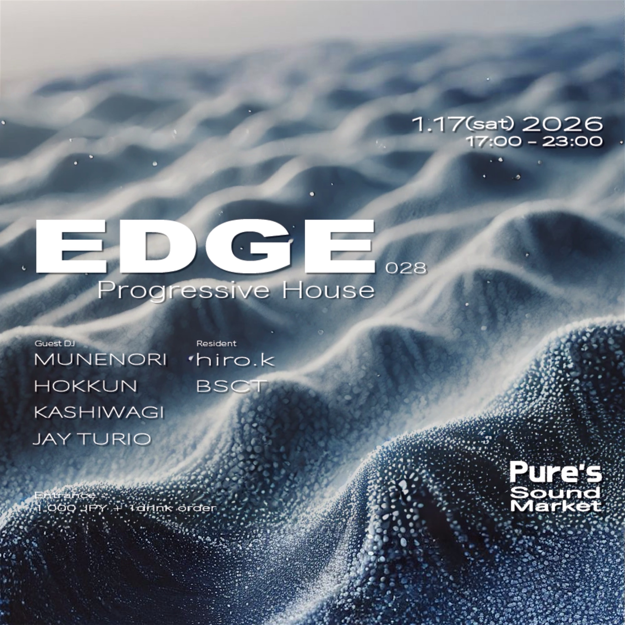 Guest DJ: MUNENORI, HOKKUN, KASHIWAGI, JAY TURIO Resident: hiro.k, BSCT