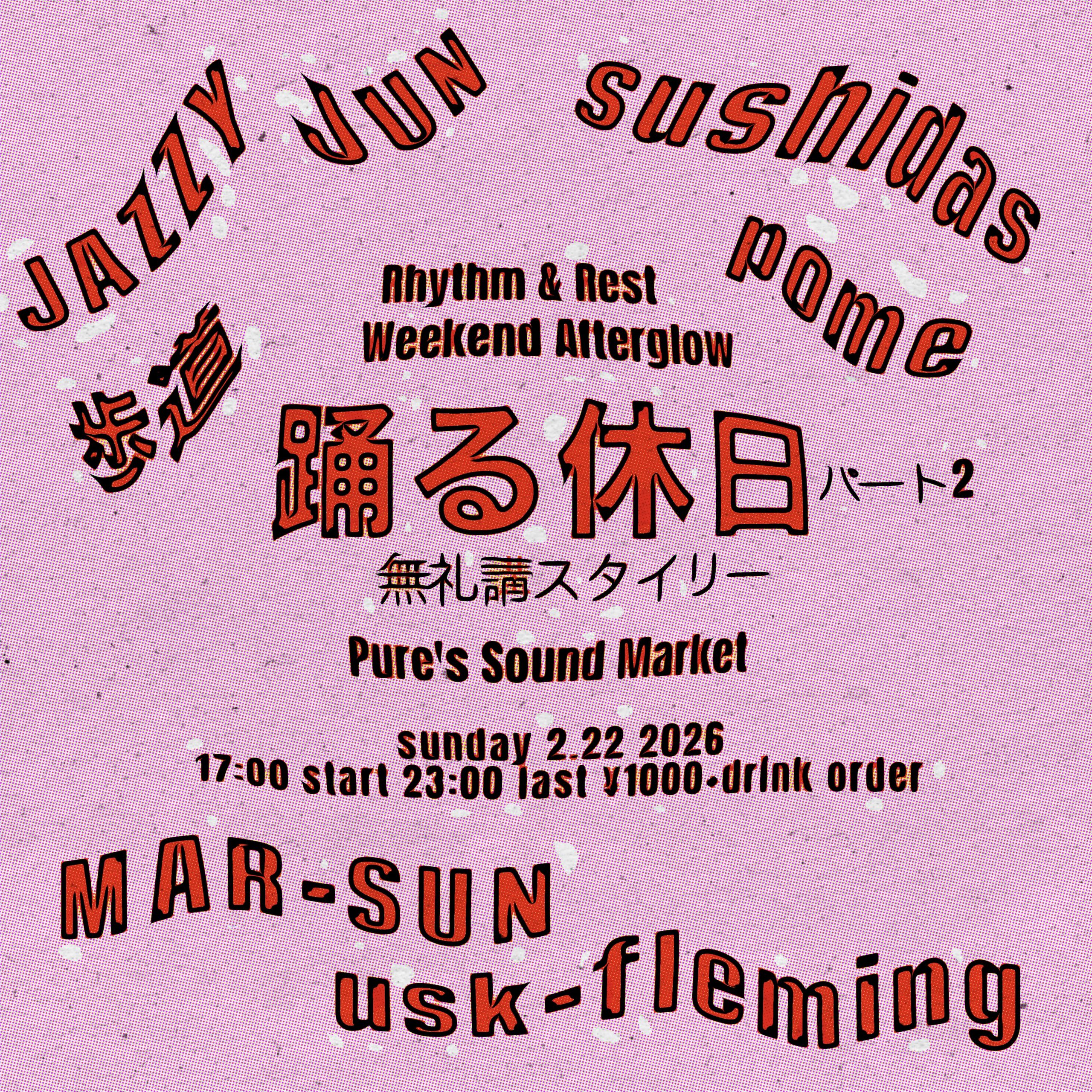 DJ: JAZZY JUN, Sushidas, 歩道, Pome, MAR-SUN, usk-fleming